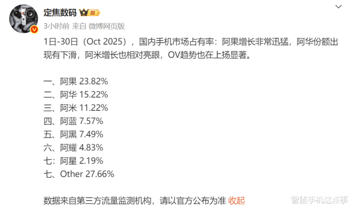 而近期,有市场调研报告显示,2025年10月,苹果iPhone在中国市场的份额一下子冲到了23.82%,重新抢回了第一的位置,取代了华为。